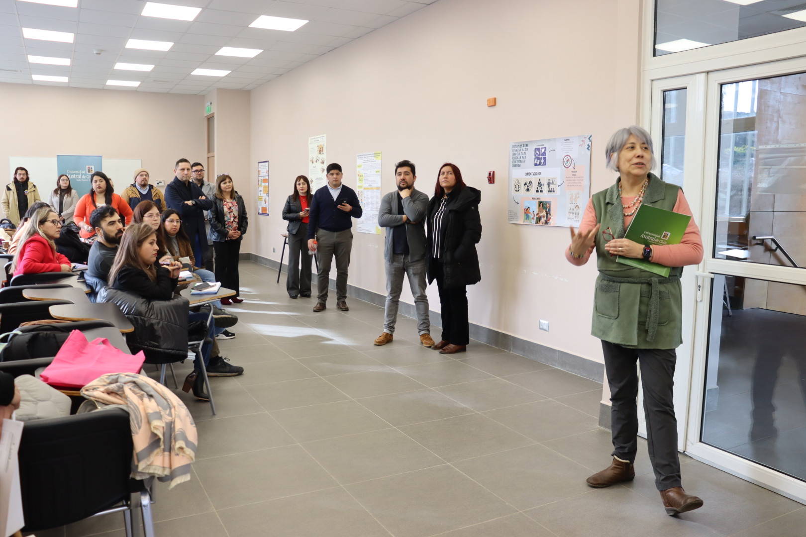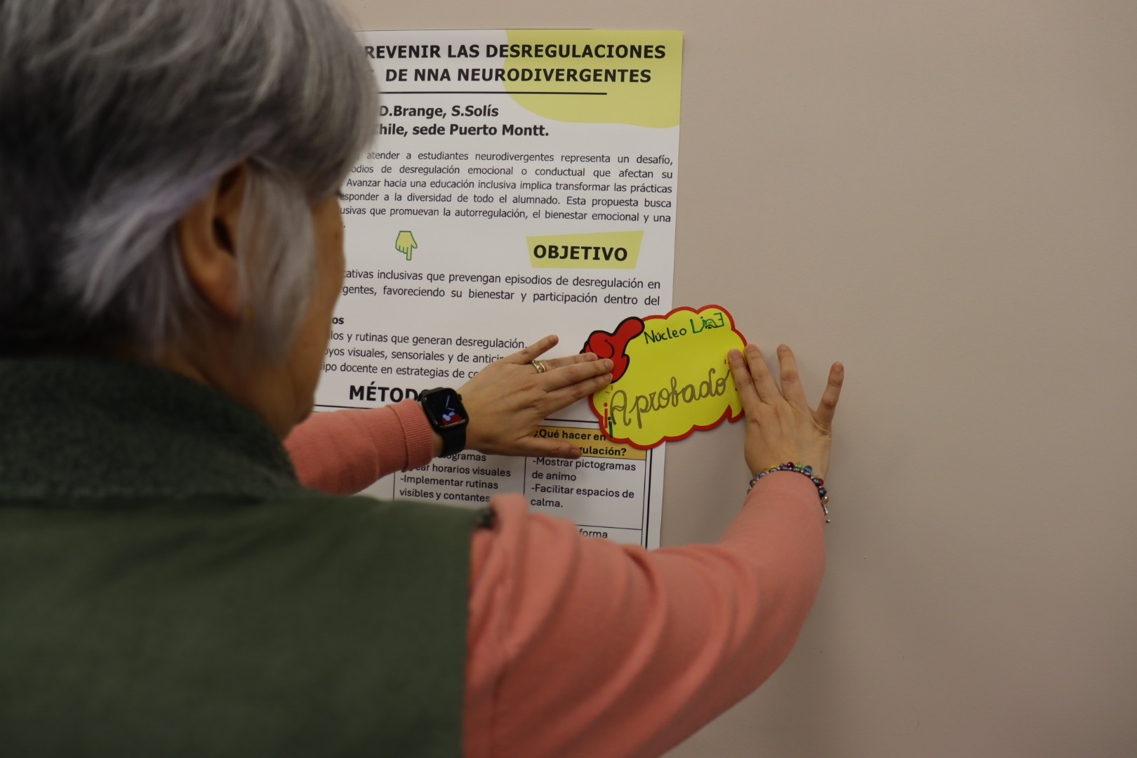 La jornada correspondió al proceso final de evaluación del diploma, en el que las y los participantes, provenientes de distintas comunas y con diversas formaciones profesionales, trabajaron en equipos para presentar sus propuestas mediante un póster estructurado. Este formato fue diseñado a partir de un proceso guiado que incluyó la detección de necesidades en sus comunidades educativas, el diseño de respuestas concretas y la articulación teórico-práctica de dichas propuestas. Todo ello contó con el acompañamiento del equipo docente del programa, mediante clases presenciales, apoyo asincrónico y trabajo autónomo, con espacios de orientación personalizada.