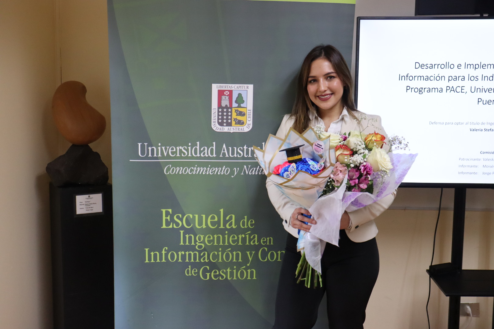 Por su parte, Valeria Díaz desarrolló un sistema de información para los indicadores de rendimiento del programa PACE que integra formularios automatizados, una base de datos y un panel interactivo en Power BI. “Con este sistema, buscamos facilitar el acceso y análisis de datos clave para el programa, mejorando la transparencia y la toma de decisiones basadas en información actualizada. Agradezco el apoyo de mis profesores y del director de la escuela durante todo el proceso”, destacó Valeria tras su defensa.