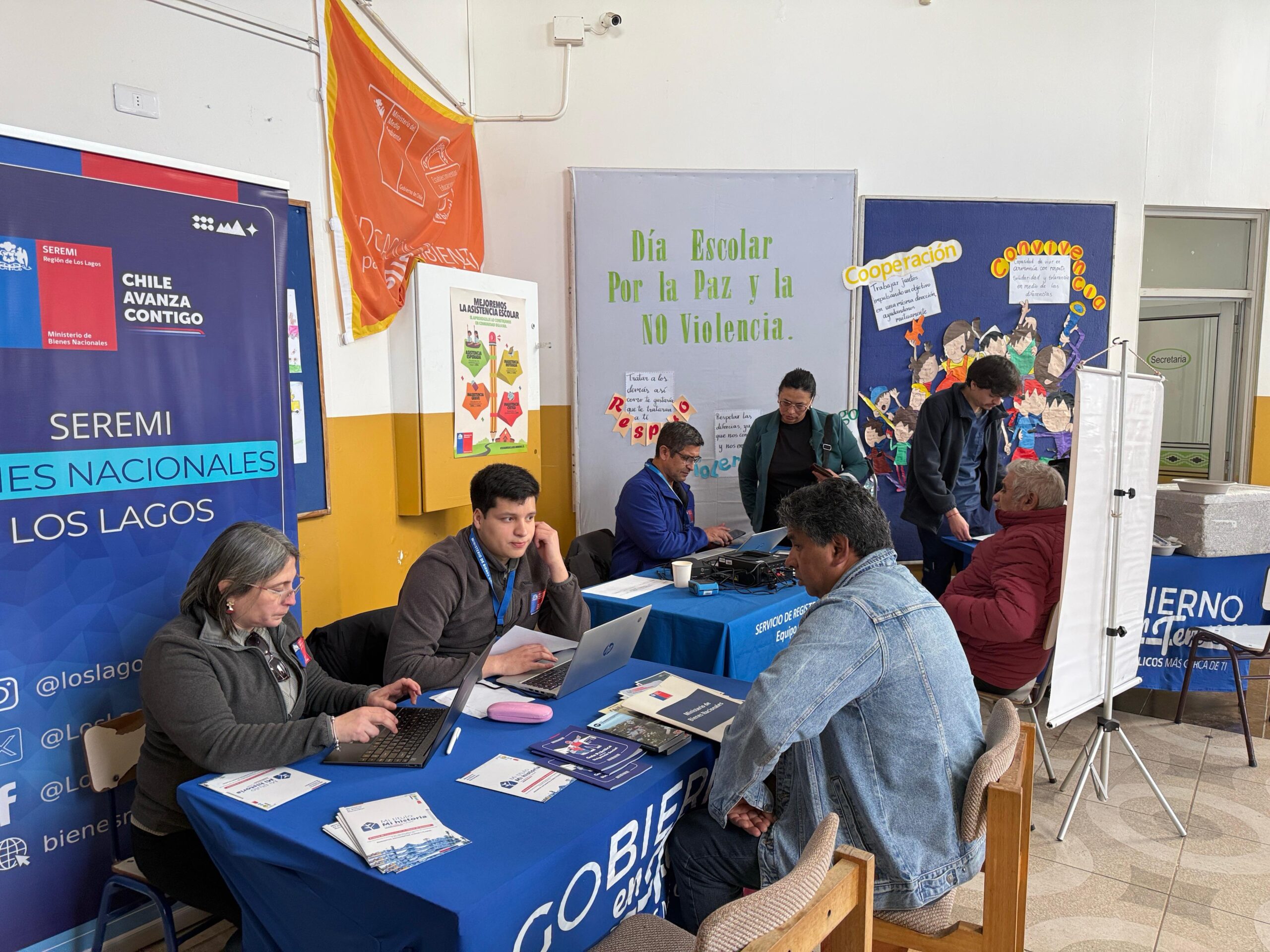 La actividad se desarrolló en la Escuela Rural de Peñasmó, donde se desplegaron equipos del Registro Civil e Identificación, Seremi de Salud, Seremi de Bienes Nacionales, Serviu, Conadi, ChileAtiende, Senama, la Oficina Provincial de Educación, el Registro Social de Hogares, Tenencia Responsable de Mascotas y Banco Estado, entre otros organismos.