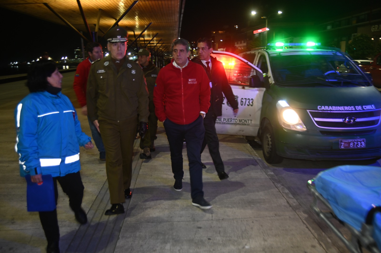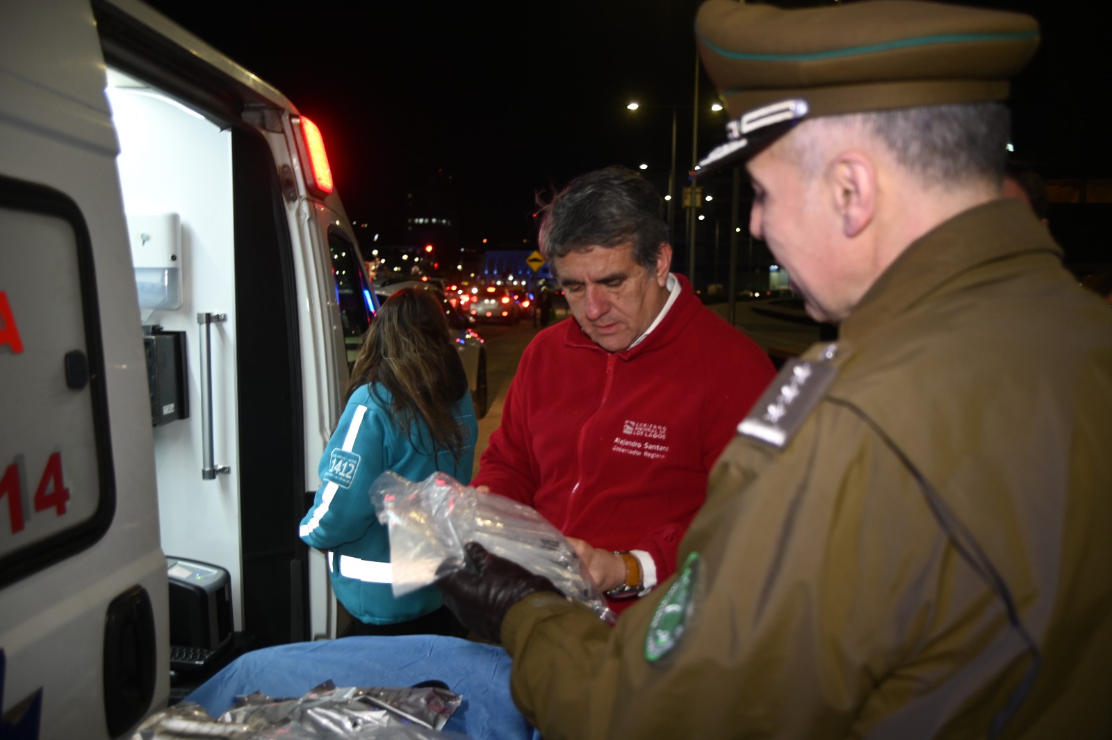 El Gobernador Regional de Los Lagos, Alejandro Santana, junto al Prefecto de Carabineros de Llanquihue, Eduardo Rosales; la Directora de SENDA Los Lagos, Maritza Canobra y los consejeros regionales Yasna Vásquez, Patricia Gallardo, César Negrón y Rodrigo Arismendi, participaron de un nuevo operativo del programa Tolerancia Cero de SENDA, realizado en pleno centro de la capital regional.