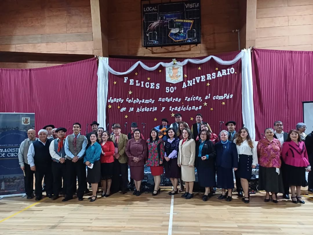Acompañados de amigos y familiares y con un recinto repleto de público, el Conjunto Folclórico “Villa San Carlos” del Magisterio de Chonchi celebró sus 50 años de trayectoria, fundado un 24 de septiembre de 1975, por un grupo de entusiastas profesores normalistas.