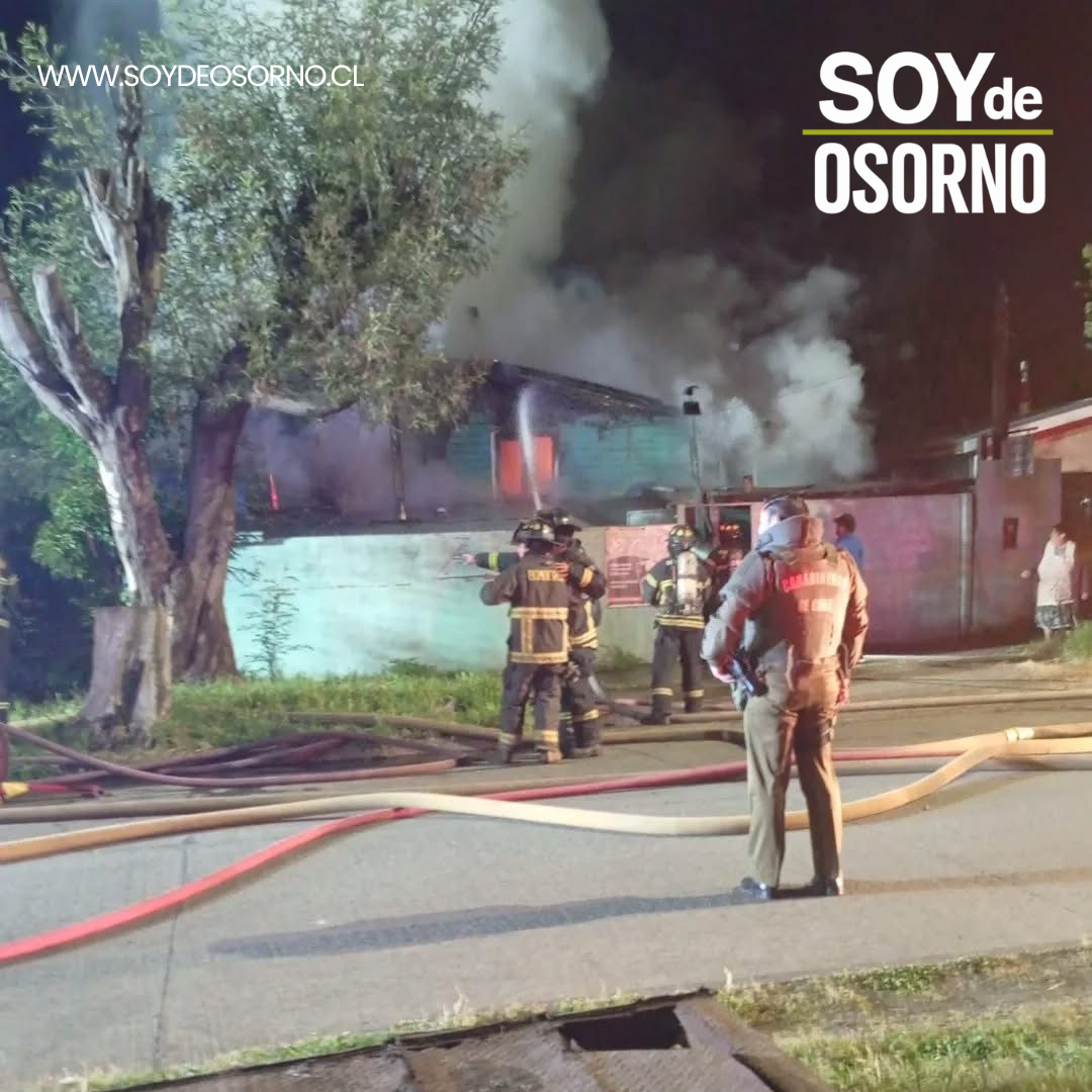 Un violento incendio registrado durante la madrugada de este martes consumió por completo una vivienda de dos pisos ubicada al final de calle Chillán, en las cercanías de Pedro Montt, sector Rahue Bajo, en la comuna de Osorno.