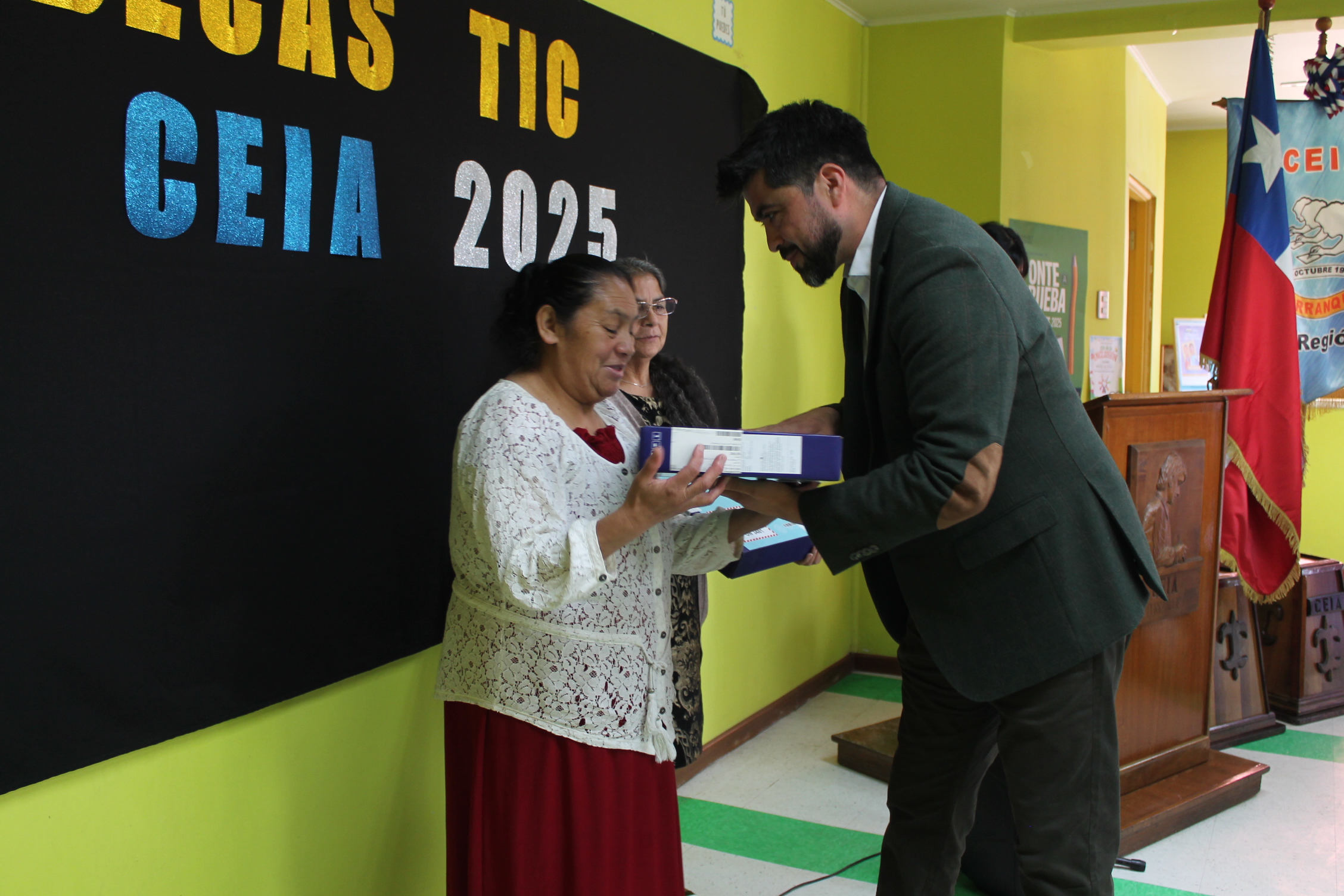 En un acto realizado en el Centro de Educación Integrada de Adultos de Purranque, diez alumnas y alumnos recibieron sus nuevos equipos, en una ceremonia encabezada por el seremi de Educación, Juan Eduardo Gómez, acompañado por el director regional de Junaeb, Víctor Nail; el jefe provincial de Educación, Luis Solis; la alcaldesa (s) Tamara Ocares, acompañada por el concejal Gabriel Cañete; la representante del senador Fidel Espinoza, Roberta Vargas, y la directora del establecimiento, Noemi Arias, además de los estudiantes beneficiados y familiares.