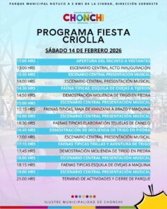 Este fin de semana, Chonchi se viste de gala para recibir a los miles de turistas y visitantes que llegarán este sábado 14 y domingo 15 de febrero hasta el Parque Municipal de Notuco, para participar en la tradicional “Fiesta Criolla 2026”, la cual es organizada por el Municipio, la ASEMUCH y las organizaciones comunitarias de la comuna.