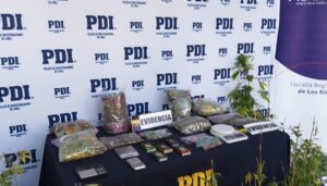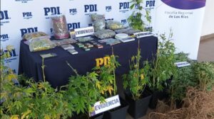 En tanto, en otra investigación paralela, Detectives de la Brigada de Investigaciones Policiales Especiales y Antisecuestros BIPE de la PDI, en virtud a investigación llevada en conjunto con la fiscalía Sacfi de Los Rios, concretó durante la tarde ayer, un procedimiento de entrada y registro judicial, en el sector Chihuao, comuna de Máfil. En el lugar, fue detenido en flagrancia por Infracción a la Ley de Drogas, un hombre de 35 años de edad, nacionalidad chilena, con antecedentes policiales, y se le incautaron diversos elementos, entre los cuales destacan 25 plantas de cannabis sativa, las cuales mantenía al interior de un invernadero para su posterior comercialización, todo lo anterior avaluado en más de 12 millones y medio de pesos, sacando de circulación más de 12.500 dosis de cannabis sativa. El imputado, será puesto a disposición del Tribunal respectivo, durante la mañana de hoy.