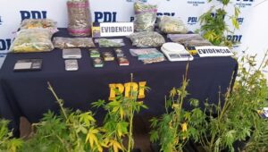 Lo incautado por los Oficiales de la PDI, corresponde a 3 kilos 734 gramos de cannabis a granel, una parte de ella procesada y otra en proceso de secado, además de 4,96 gramos de hongos alucinógenos. Además, en la misma vivienda se encontraron 14 plantas de cannabis, con alturas que iban desde los 60 centímetros hasta 1,15 metros.
