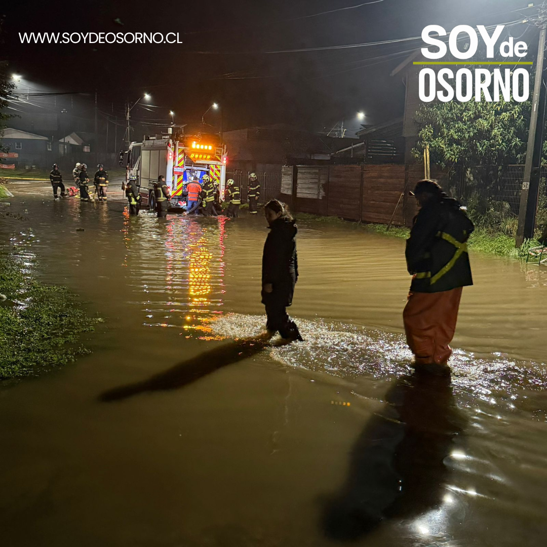 Ante la emergencia, Bomberos de Osorno se desplegaron en distintos sectores para trabajar en el drenaje de agua mediante motobombas. A esto se sumó el apoyo de equipos municipales, voluntarios de URAT y personal de seguridad pública, quienes monitorearon la situación y colaboraron en las zonas más afectadas.